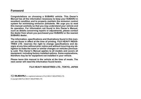 Download 2006 subaru outback user manual Epub