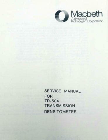 macbeth td 504 user guide Kindle Editon By Click Button. macbeth td 504 user guide it’s easy to recommend a new book category such as Novel, journal, comic, magazin, ect. You see it and you just know that the designer is also an author and understands the challenges involved with having a good book. You can easy klick for detailing book and you can read it online, even you can download it